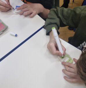 Sljedeći je korak bila primjena naučenoga u izradi uporabnih predmeta. Učenicima je bilo ponuđeno nekoliko aktivnosti u kojima su mogli pokazati svoje znanje i kreativnost – oslikavanje platnenih vrećica glagoljičnim slovima, izrada nakita i suvenira u obliku glagoljičnih slova te izrada dočitnica.
