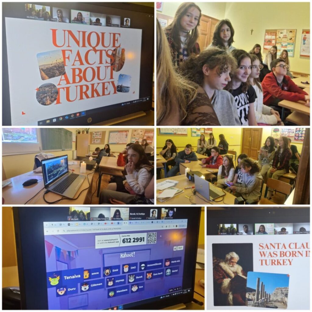 Nakon prezentacija obje zemlje, govorili smo o sličnostima i razlikama naših zemalja, a na kraju smo zajedno odigrali Kahoot kviz o tradicijama i običajima u Hrvatskoj i Turskoj.