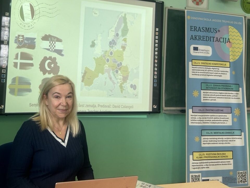 Slađana Murković predstavila je seminar Integracija umjetne inteligencije u učionici s kritičkim mišljenjem, održan u Rimu od 20. do 25. listopada 2025. godine. Seminar je bio usmjeren na etičnu i odgovornu primjenu alata umjetne inteligencije u obrazovanju te na razvoj kritičkog mišljenja kod učenika. Sudionici su se upoznali s AI alatima poput Perplexityja, ChatGPT-a, DeepL-a i drugih, kao i s platformama namijenjenima učiteljima, primjerice Magic School AI for Educators, Driffit for Teachers, Algor Education i dr. Naglasak je stavljen na kreativnu i pedagoški utemeljenu uporabu tehnologije uz očuvanje temeljnih odgojno-obrazovnih vrijednosti.