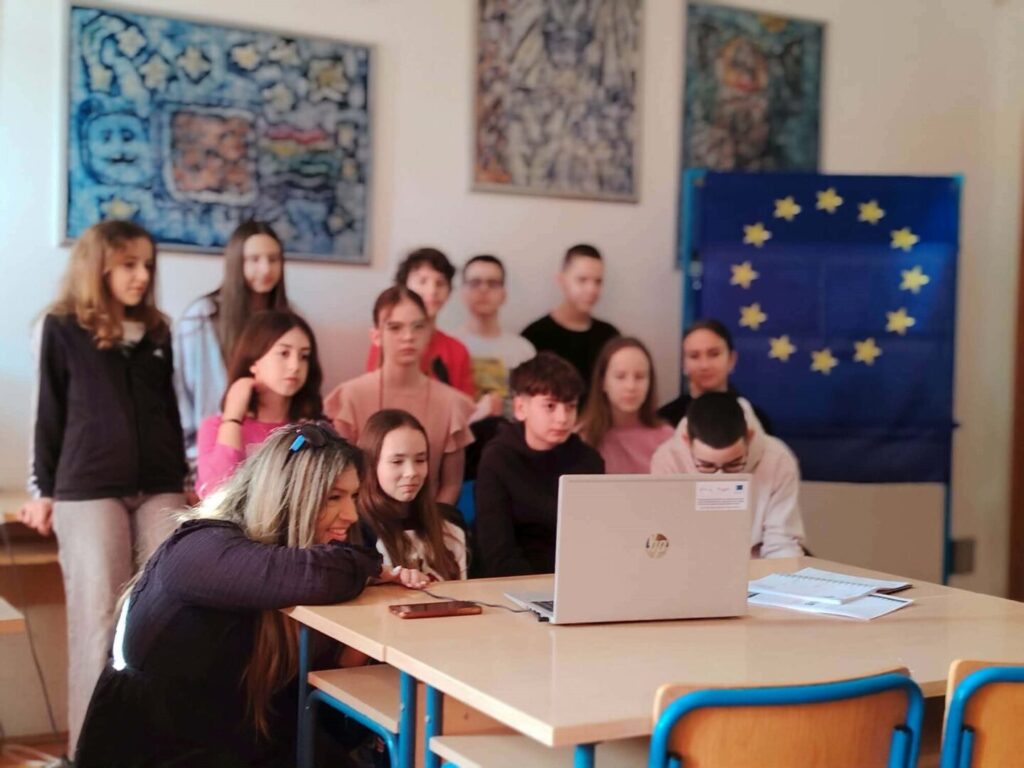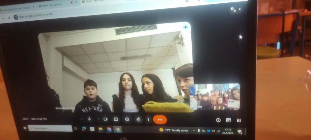 U srijedu, 25.2.2026. 12 naših učenika 6.razreda uz vodstvo knjižničarke Irene Bando i učiteljice engleskog i njemačkog jezika Iris Zorić, susreli su se preko videopoziva s vršnjacima iz Montemurla, Italije kamo idu na mobilnost od 23.3.2026.-28.3.2026. U uvodnom dijelu su se sve prisutne učiteljice predstavile i rekle ukratko nešto o našoj školi i planu puta, ali glavni cilj ovoga puta bio je upoznavanje i predstavljanje učenika jedni drugima. Učenici su se predstavili na više jezika- talijanskom i engleskom te su izrazili radost i zadovoljstvo susreta uživo uskoro. Knjižničarka Irena Bando i učiteljica Iris Zorić su također dogovorili još jedan online susret s talijanskim učiteljima i njihovom Erasmus koordinatoricom kako bi dogovorile detalje boravka u Montemurlu.