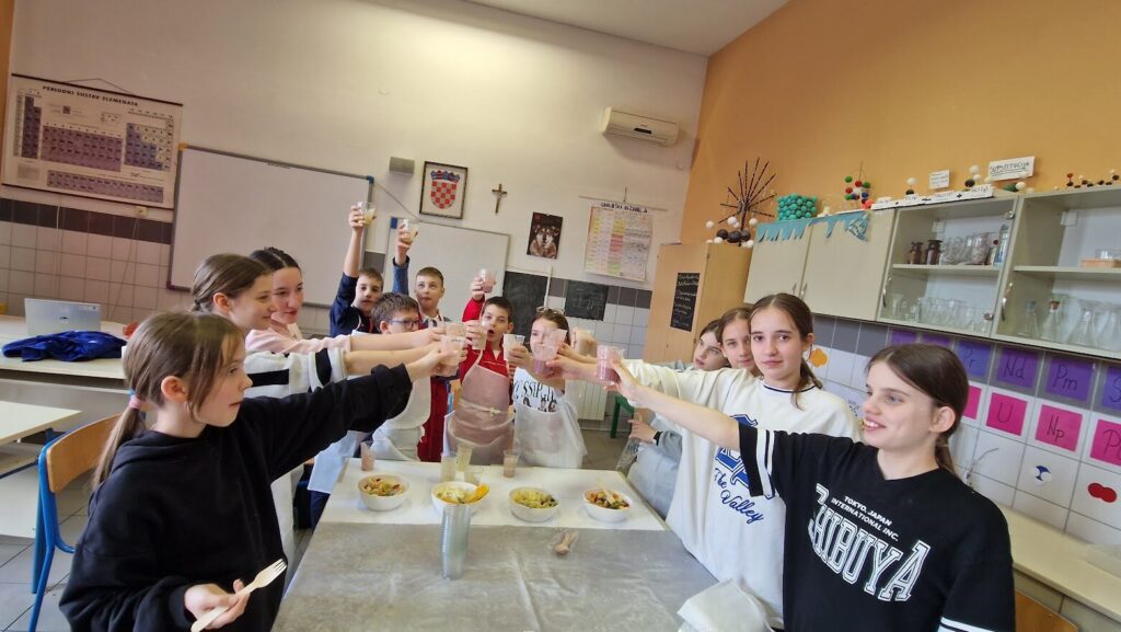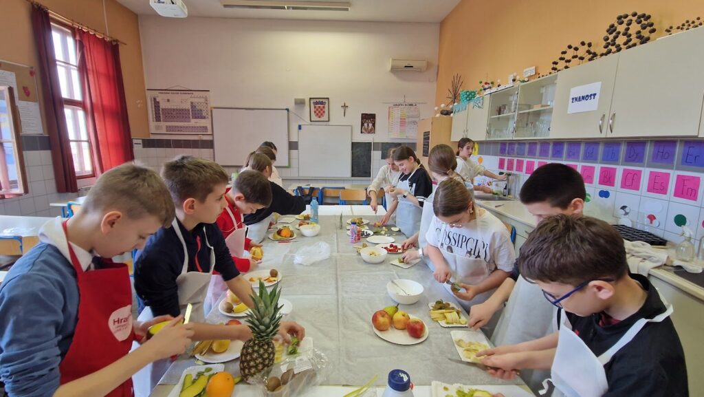 Završni dio projekta bio je praktična radionica pod nazivom “Voćni izazov: Smoothie vs. Voćna salata”. Kroz ovu aktivnost učenici su: pripremali voće, rezali i kombinirali sastojke, pratili recepte koje su sami osmislili, surađivali unutar timova. Radionica je imala natjecateljski karakter, što je dodatno motiviralo učenike. Na kraju smo zajednički kušali pripremljene proizvode i razgovarali o okusima, kombinacijama voća i važnosti svježih namirnica.