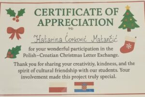Nakon božićne radionice i slanja čestitaka i pisama, u našu je školu stigla posebna međunarodna pošta – Božićna čarolija stigla je ravno iz Poljske u naša srca!