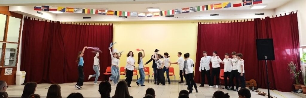 Učenici 6.c razreda su zajedno sa svojom učiteljicom engleskog i njemačkog jezika osmislili točku u trajanju od 7 minuta za priredbu dobrodošlice za goste iz Italije i Španjolske. Točka je bila plesno-pjevna, a sastojala se od pjesama: Que sera, sera, Sara perche ti amo, Bamboleo, Espresso machiato, Mamma Maria i Bella ciao pjesme na španjolskom, engleskom i talijanskom jeziku.