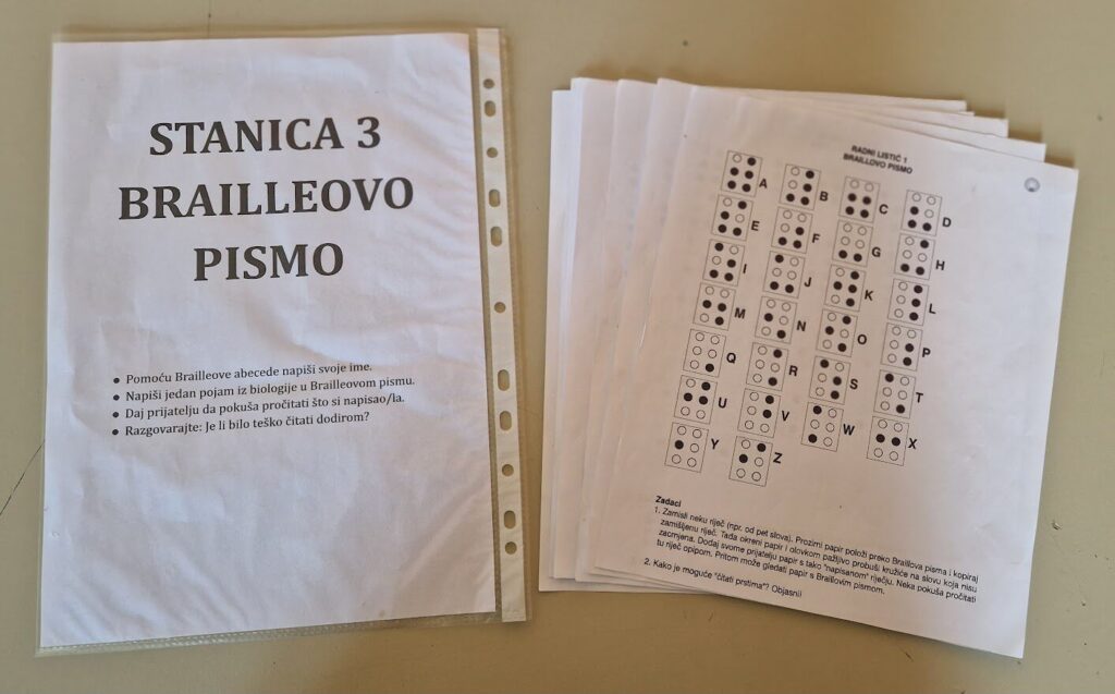 Ova stanica imala je snažan iskustveni i odgojni karakter. Učenici su pokušali napisati svoje ime i jedan biološki pojam Brailleovim pismom te su zatim razmijenili radove i pokušali ih pročitati dodirom.